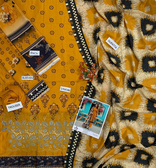 Khaddar 3PC Printed Chicken Kari Dress With Printed Shawl- KH-9