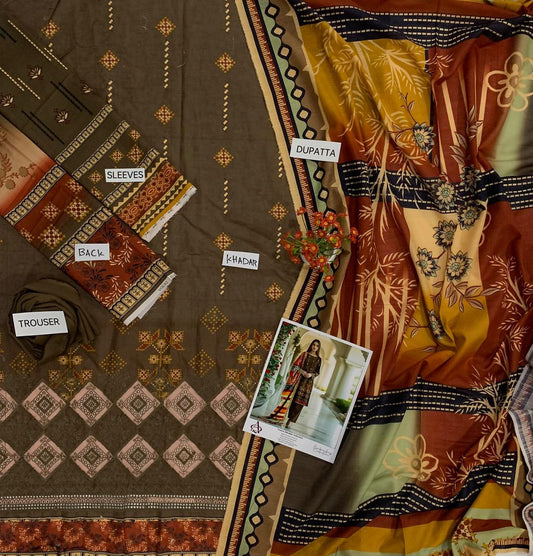 Fully EMB 3PC Unstitched Winter Dress With EMB Shawl- DE-145
