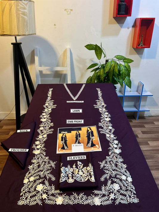 Embroidered 2Pc Dhanak Unstitched Winter Dress With EMB Patches - Plum W04