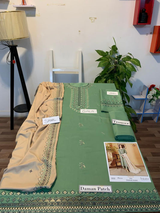 Fully EMB 3PC Dhanak Unstitched Winter Dress With EMB Shawl - W105