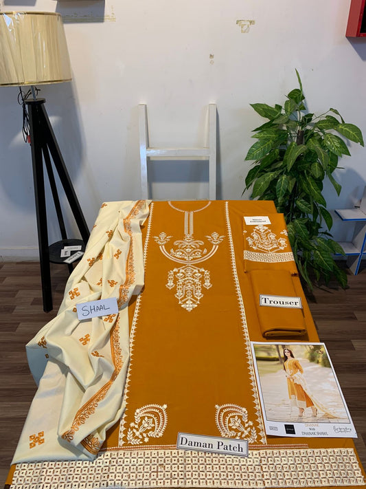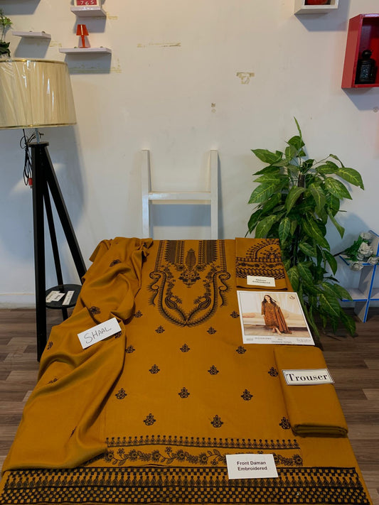 Fully EMB 3PC Dhanak Unstitched Winter Dress With EMB Shawl - W103