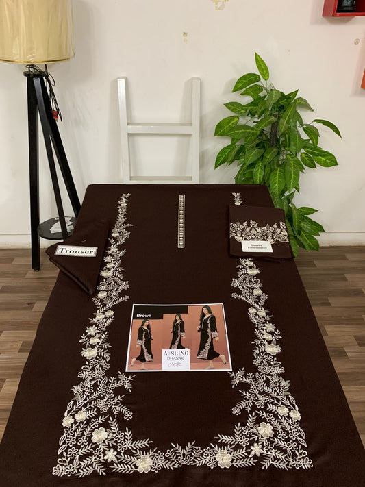 EMB 3PC Dhanak Unstitched Winter Dress With EMB Shawl- W124