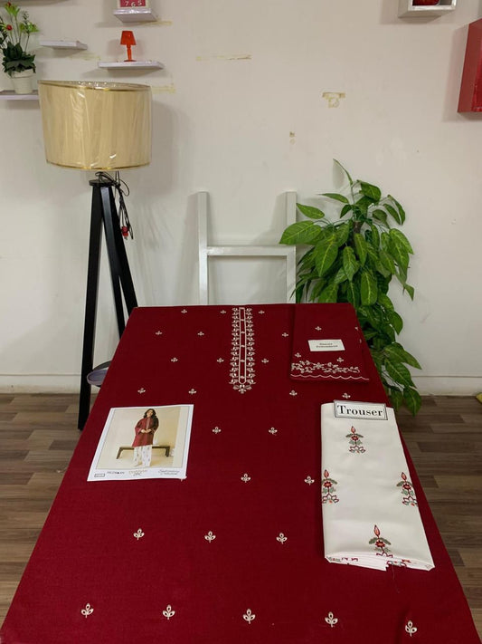 EMB 3PC Dhanak Unstitched Winter Dress With EMB Shawl- W123