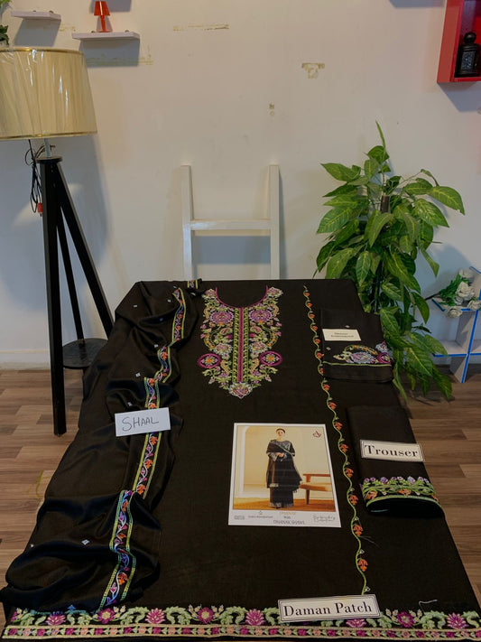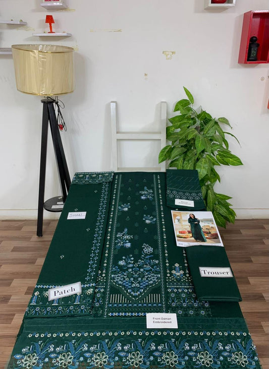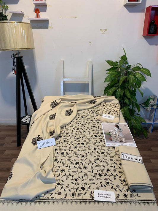 Fully EMB 3PC Dhanak Unstitched Winter Dress With Wool Shawl - W110