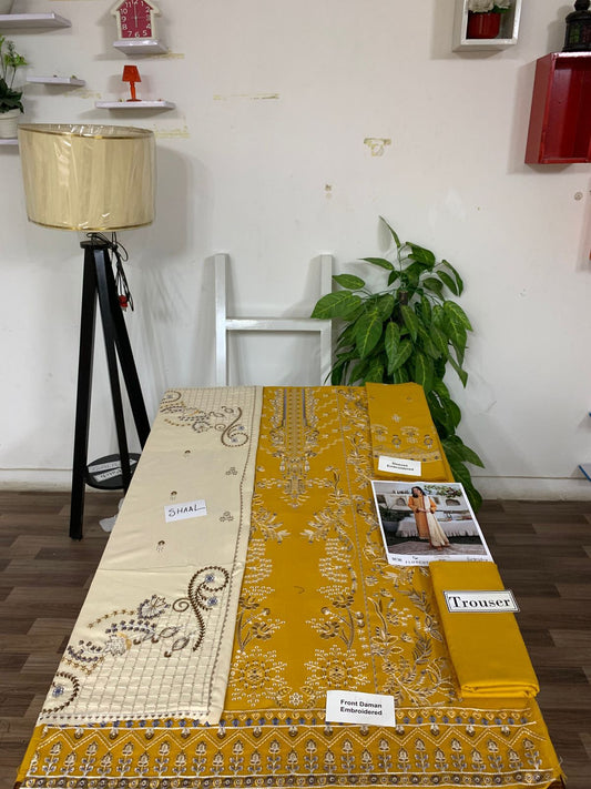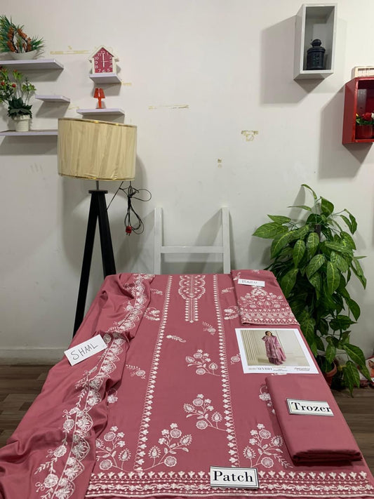 EMB 3PC Unstitched Winter Dress With EMB Shawl- WA-120