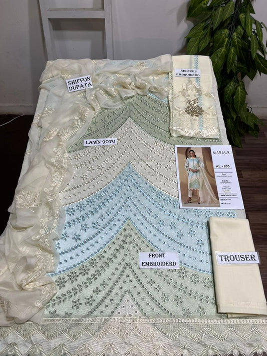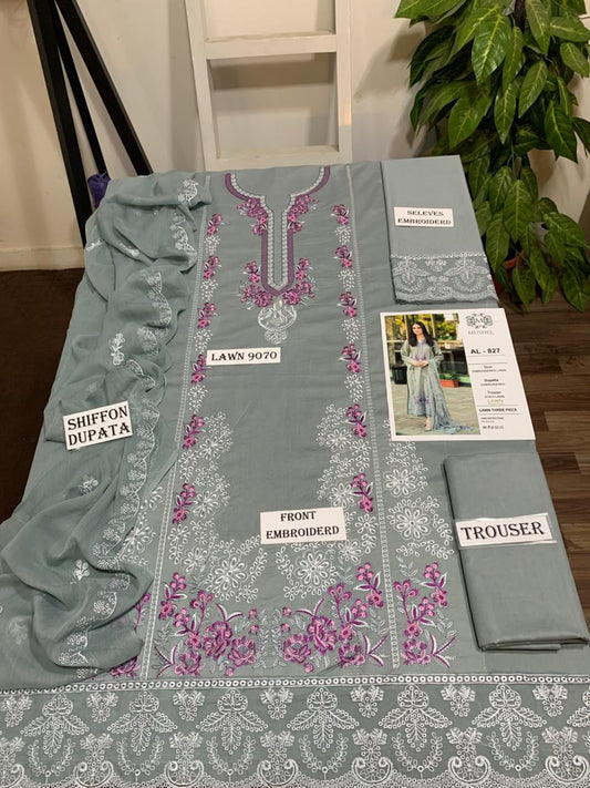3 Piece - Embroidered Lawn Suit With Embroidered Chiffon Dupatta AL-827
