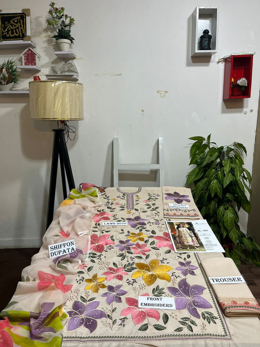 3 Piece - Embroidered Lawn Suit With Emb Chiffon Dupatta AL-823