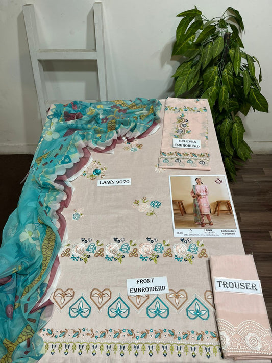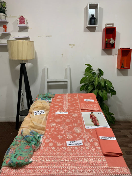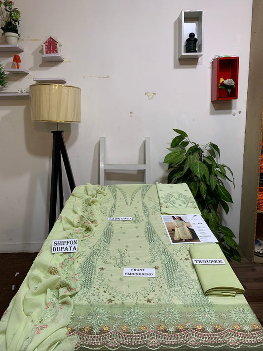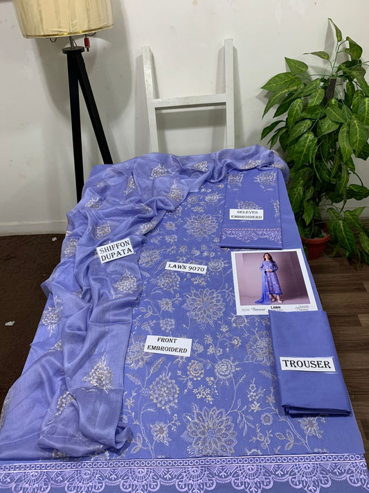 3 Piece - Embroidered Lawn Suit With Emb Chiffon Dupatta DE-515