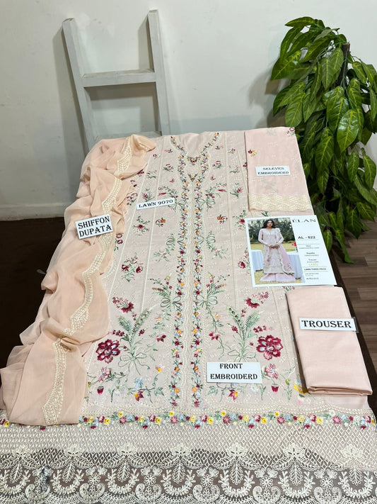 3 Piece - Embroidered Lawn Suit With Slub Monar Dupatta AL-825P