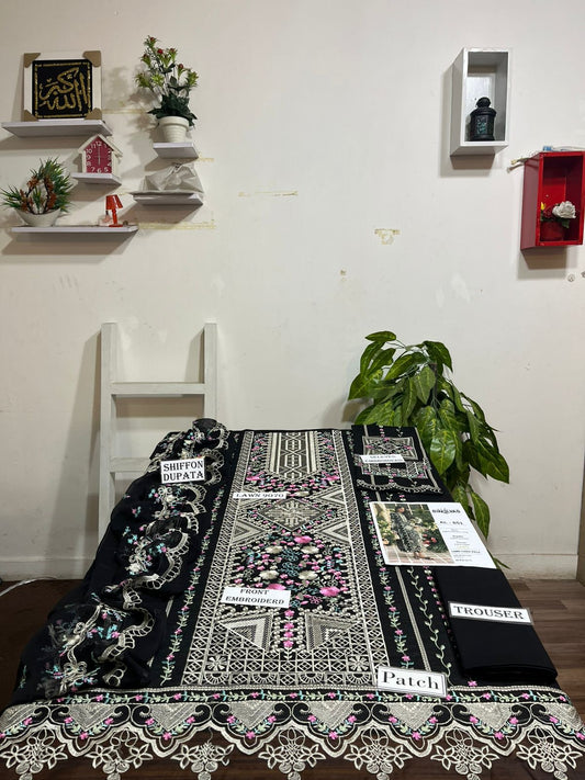 3 Piece - Embroidered Lawn Suit With Embroidered Chiffon Dupatta AL-816