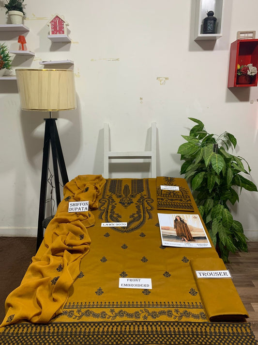 3 Piece - Embroidered Lawn Suit With Emb Chiffon Dupatta WA-129
