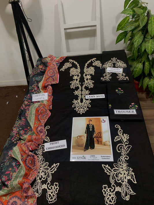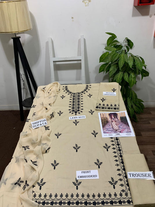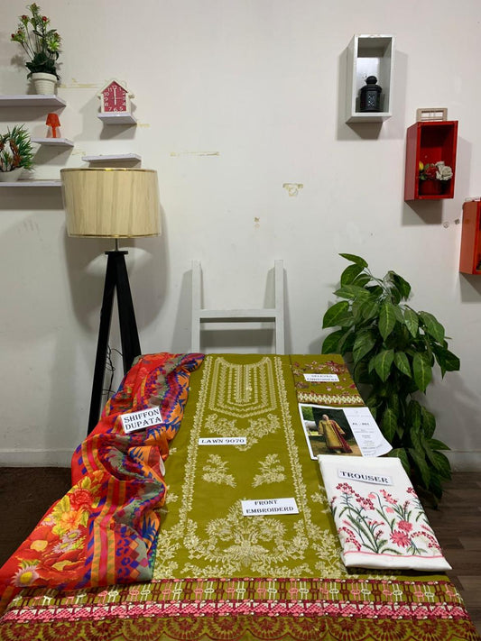 3 Piece - Embroidered Lawn Suit With Embroidered Chiffon Dupatta