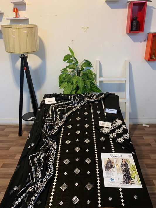 3 Piece - Embroidered Lawn Suit With Slub Monar Dupatta AL-825