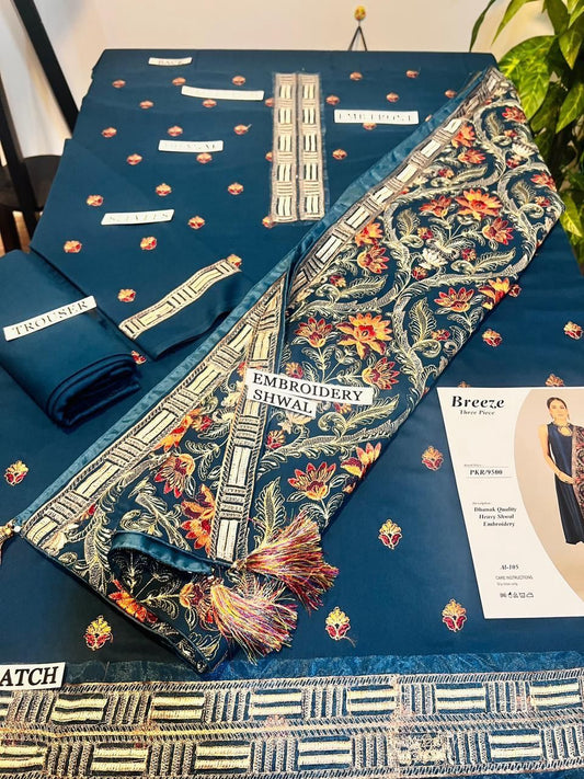 EMB 3PC Unstitched Winter Dress With Pashmina Printed Shawl- DE-141