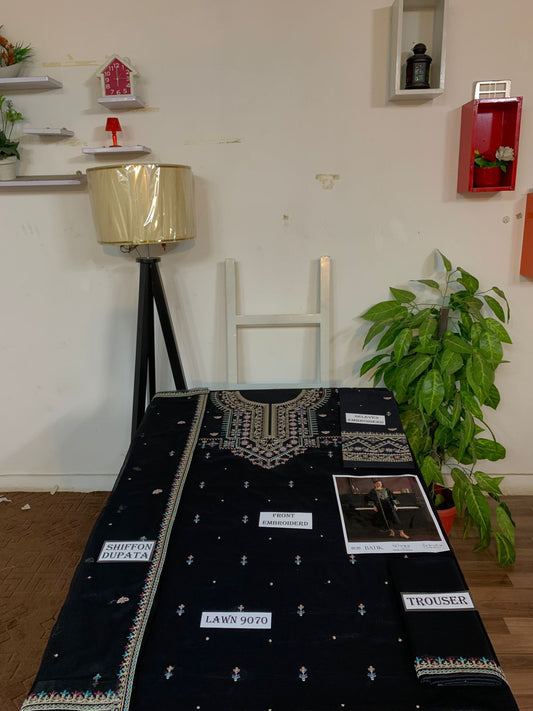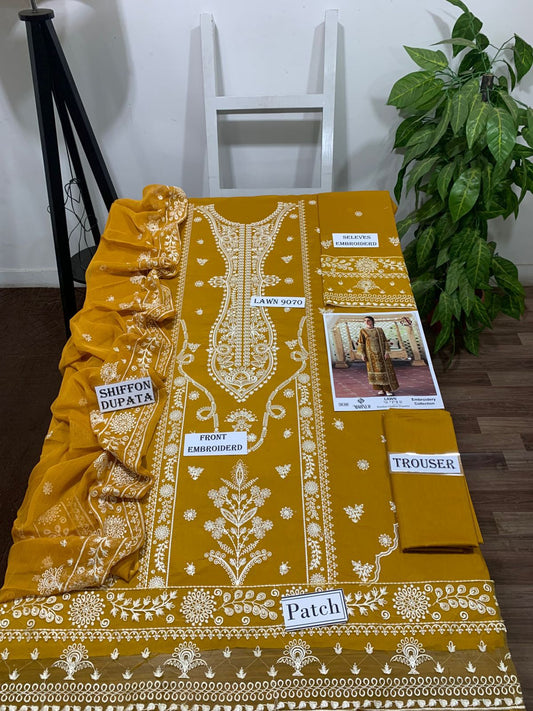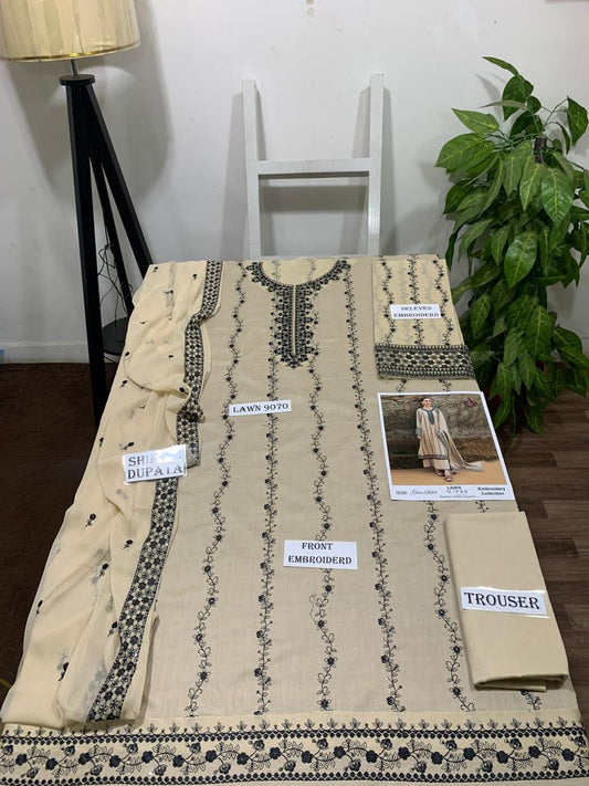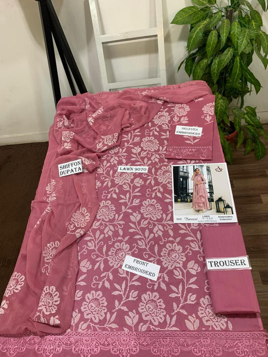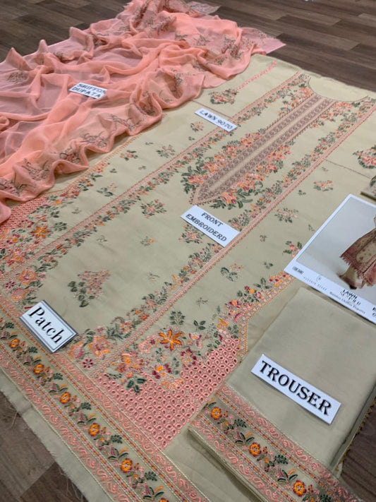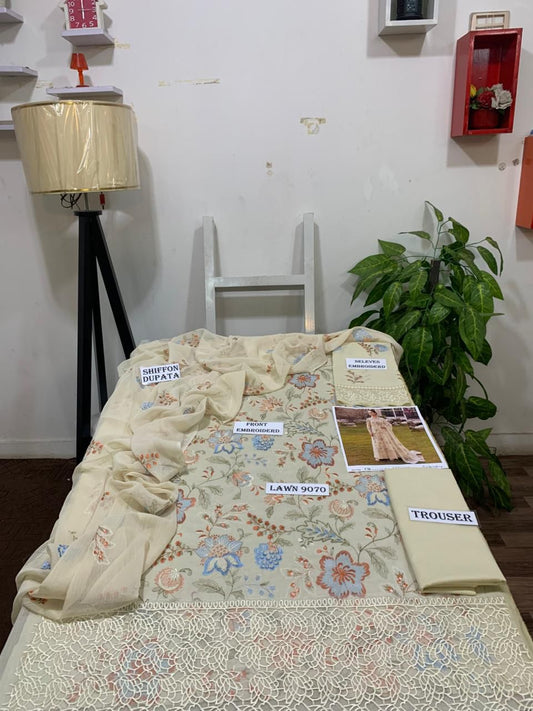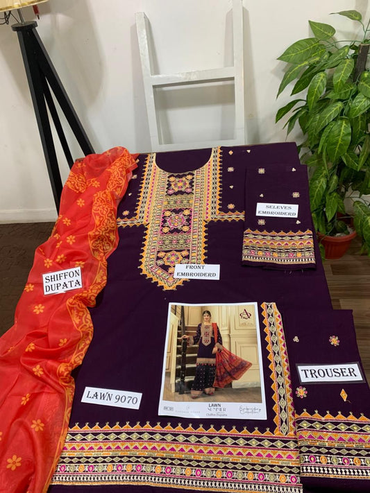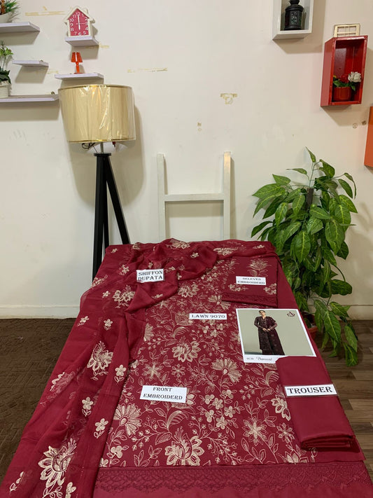 Emb 3PC Lawn Summer Dress With Emb Chiffon Dupatta - DE-507