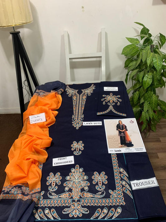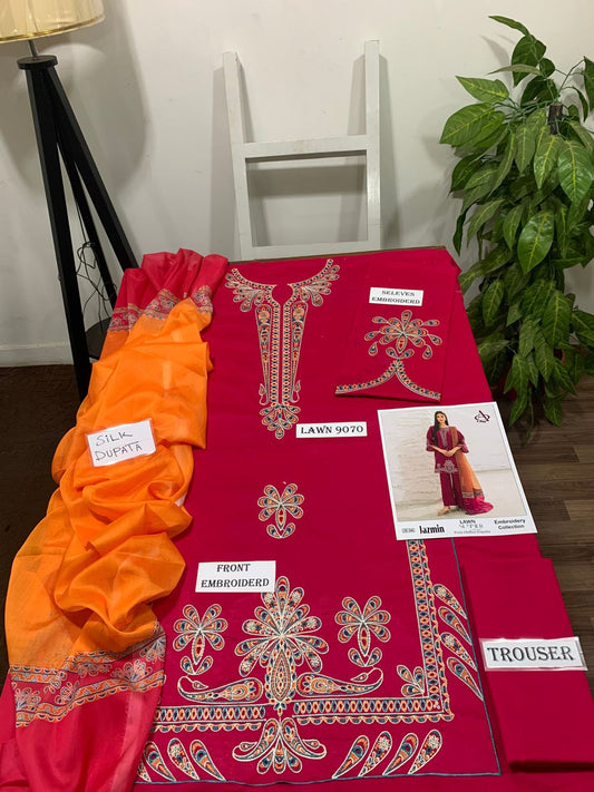 Emb 3PC Lawn Summer Dress With Silk Printed Dupatta - DE-555