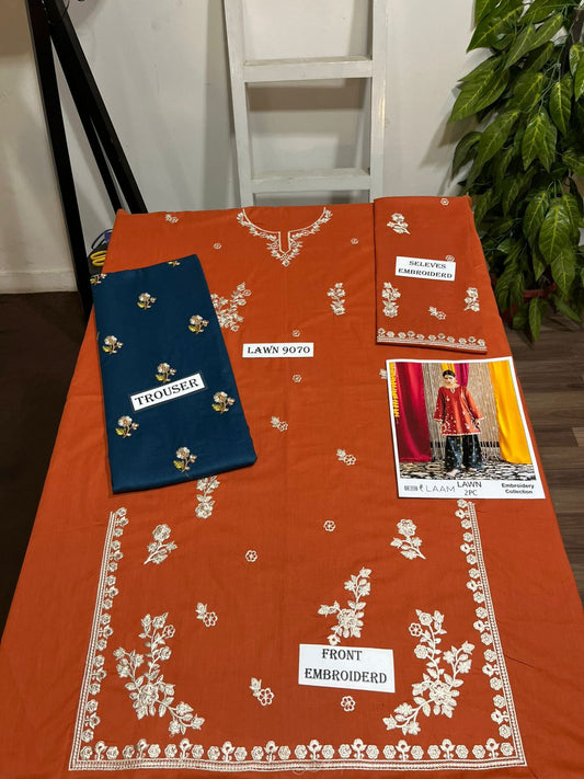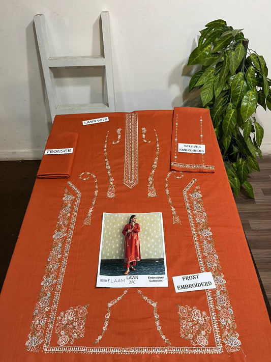 Embroidered 2Pc Lawn Unstitched Summer Dress - DE-1113OR