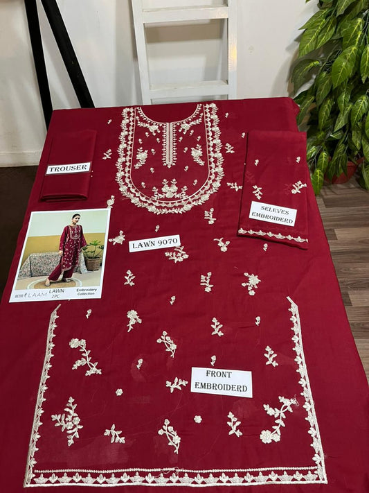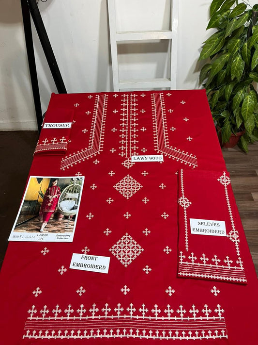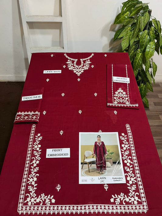 Embroidered 2Pc Lawn Unstitched Summer Dress - DE-1141RD