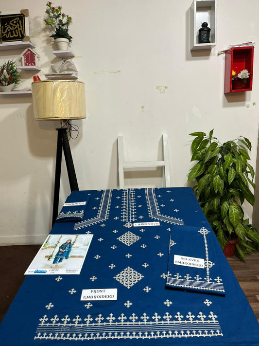 Embroidered 2Pc Lawn Unstitched Summer Dress - DE-1115BL