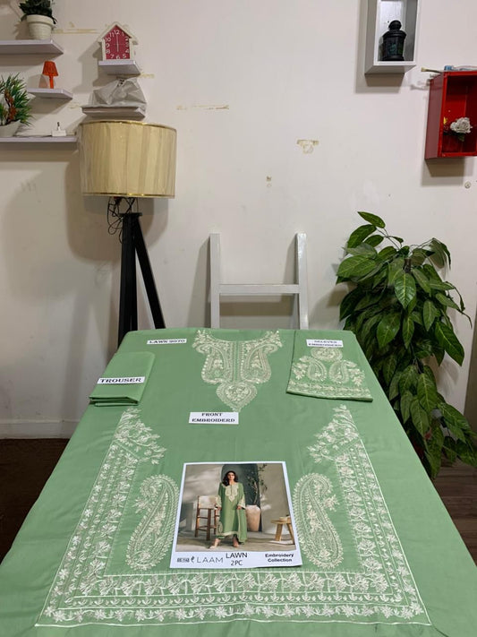 Embroidered 2Pc Lawn Unstitched Summer Dress - DE-1115GR