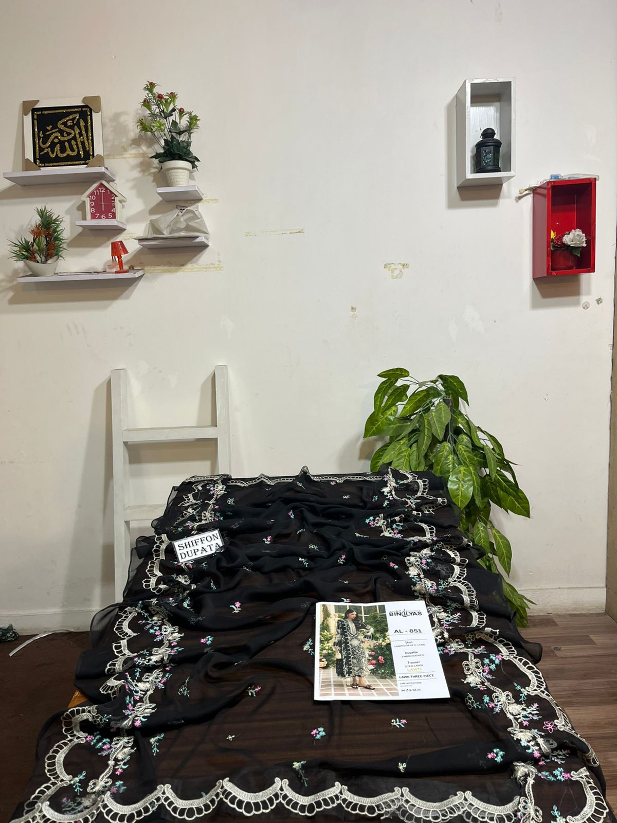 3 Piece - Embroidered Lawn Suit With Chiffon Emb Dupatta AL-851