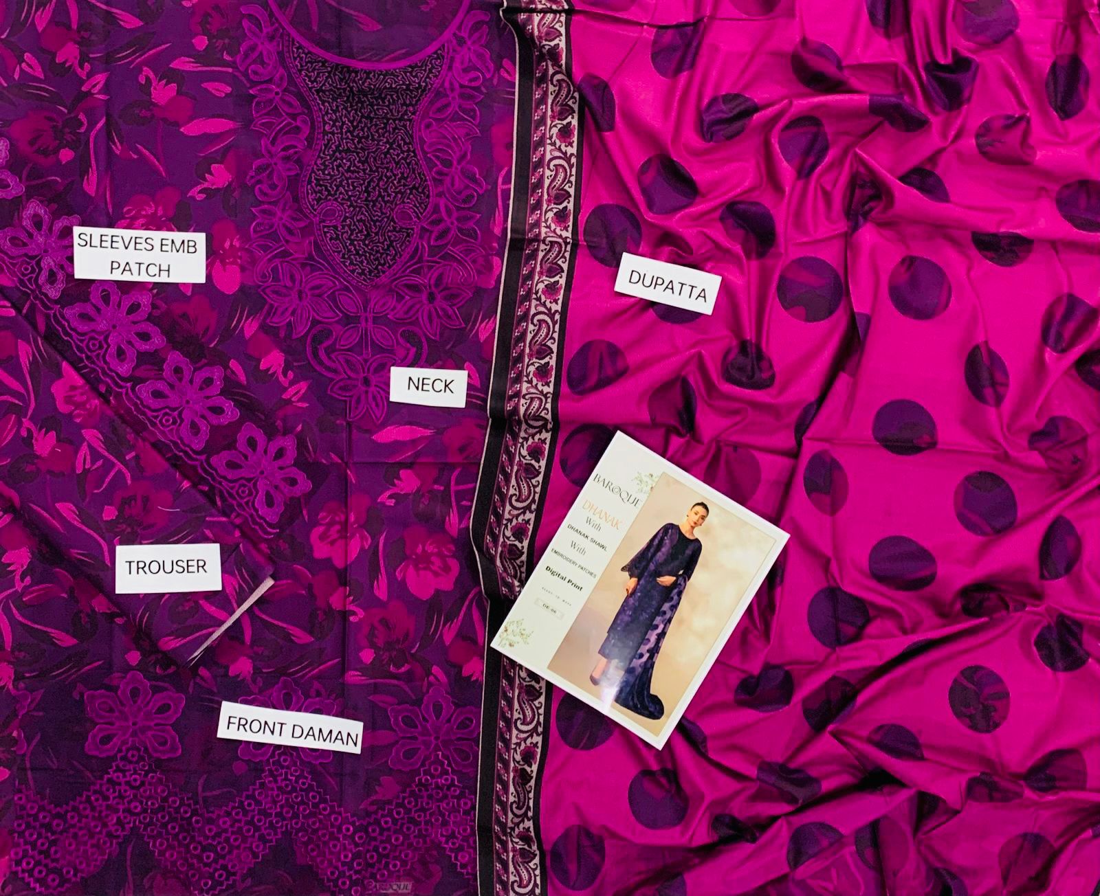 Baroque Printed 3PC Winter Unstitched Dress With Printed Shawl- DB6