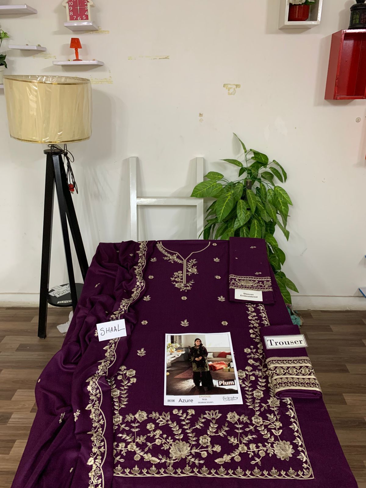 EMB 3PC Dhanak Unstitched Winter Dress With EMB Shawl- DE-136M
