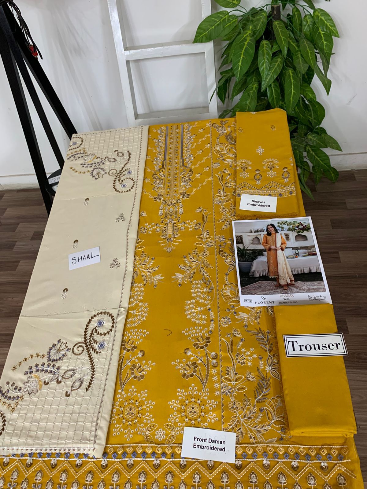 DHANAK EMB 3PC WITH EMBROIDERED SHAWL