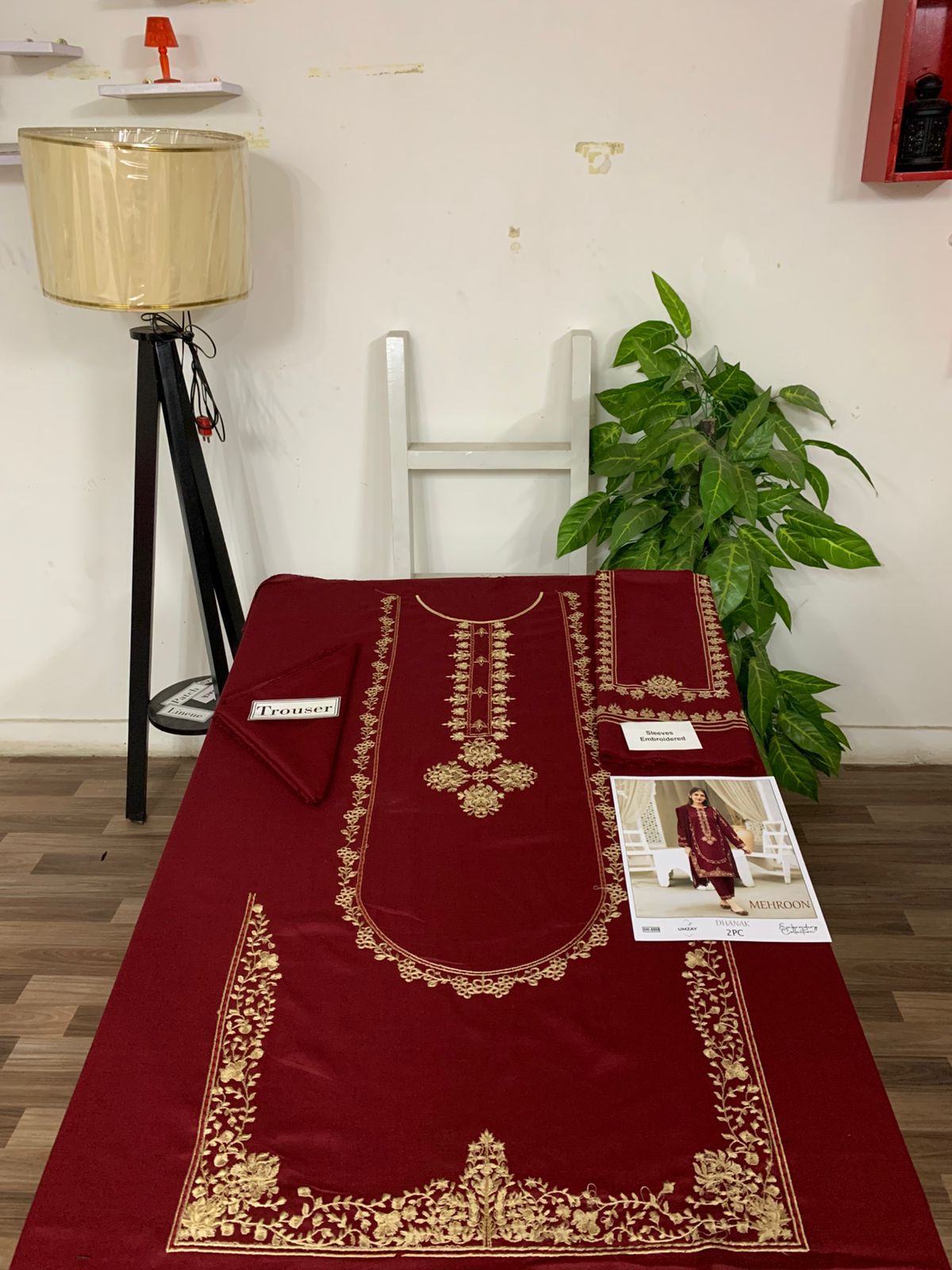 Embroidered 2Pc Dhanak Unstitched Winter Dress With EMB Patches - DE-55M