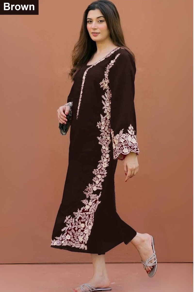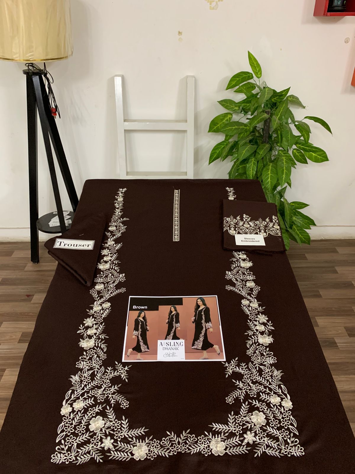 Embroidered 2Pc Dhanak Unstitched Winter Dress With EMB Patches - W625