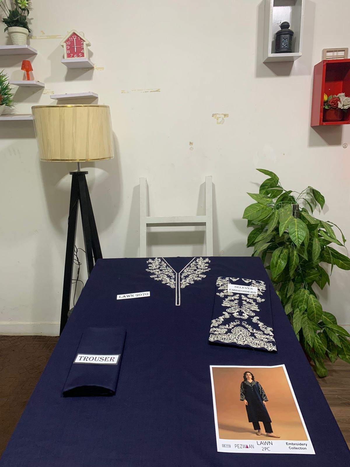 Embroidered 2Pc Lawn Unstitched Summer Dress - DE-1110BL