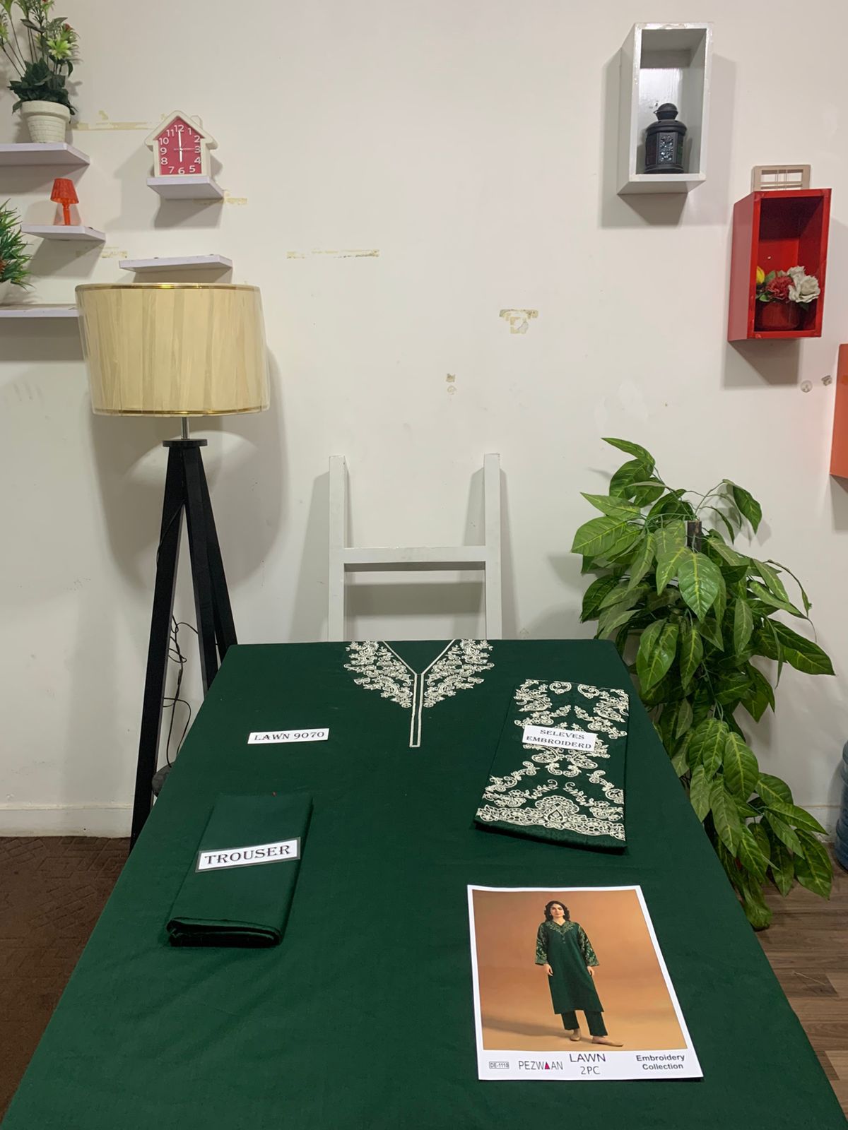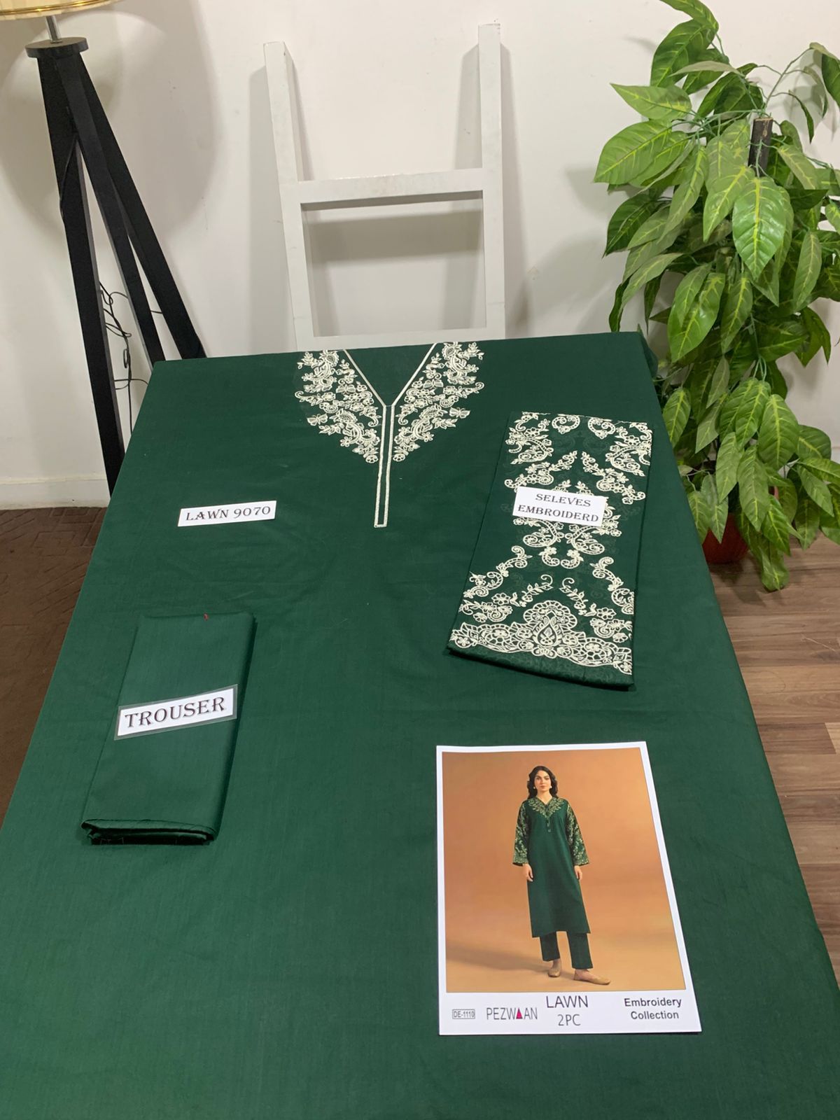 Embroidered 2Pc Lawn Unstitched Summer Dress - DE-1110GR