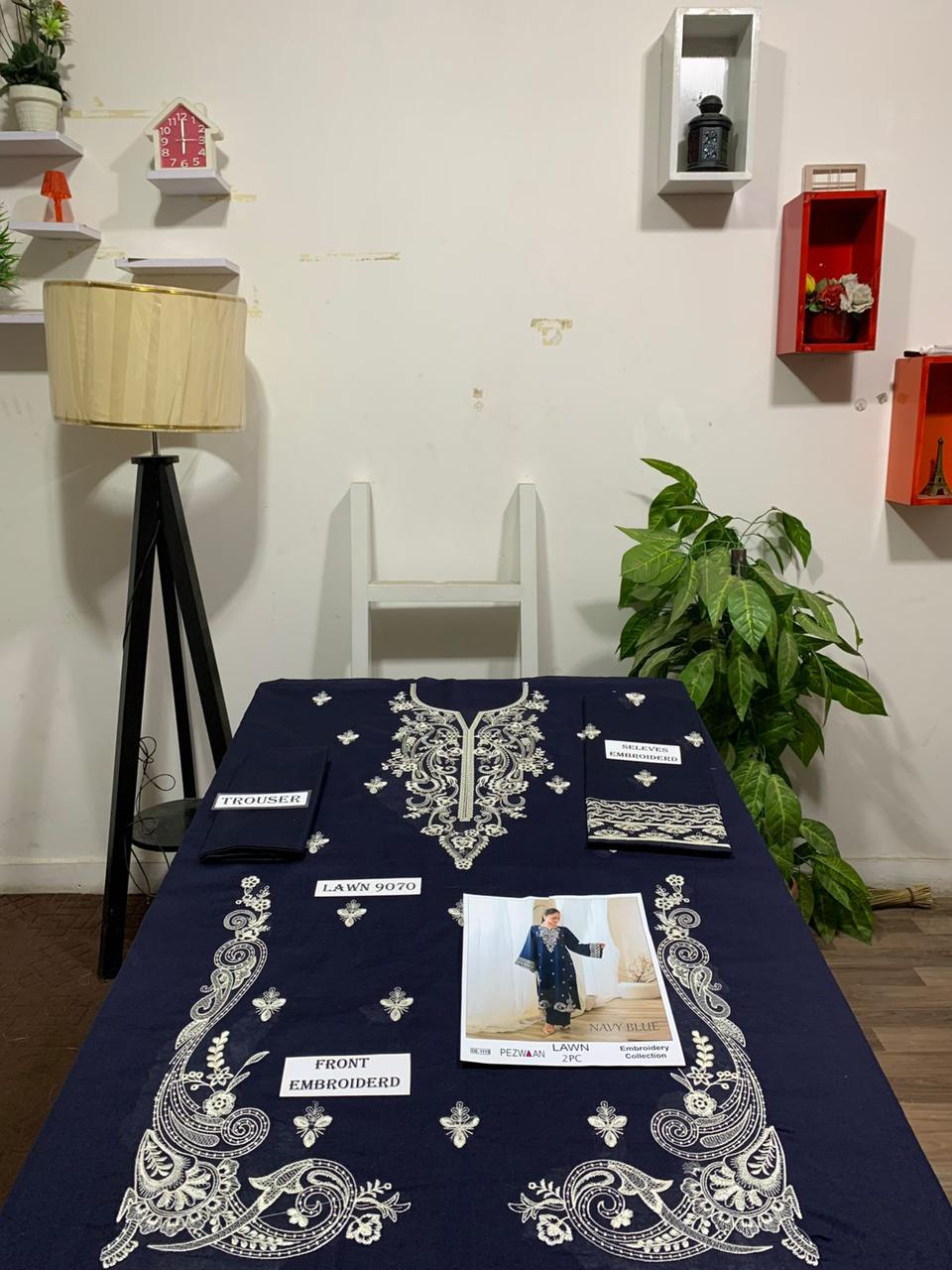 Embroidered 2Pc Lawn Unstitched Summer Dress - DE-1115BL
