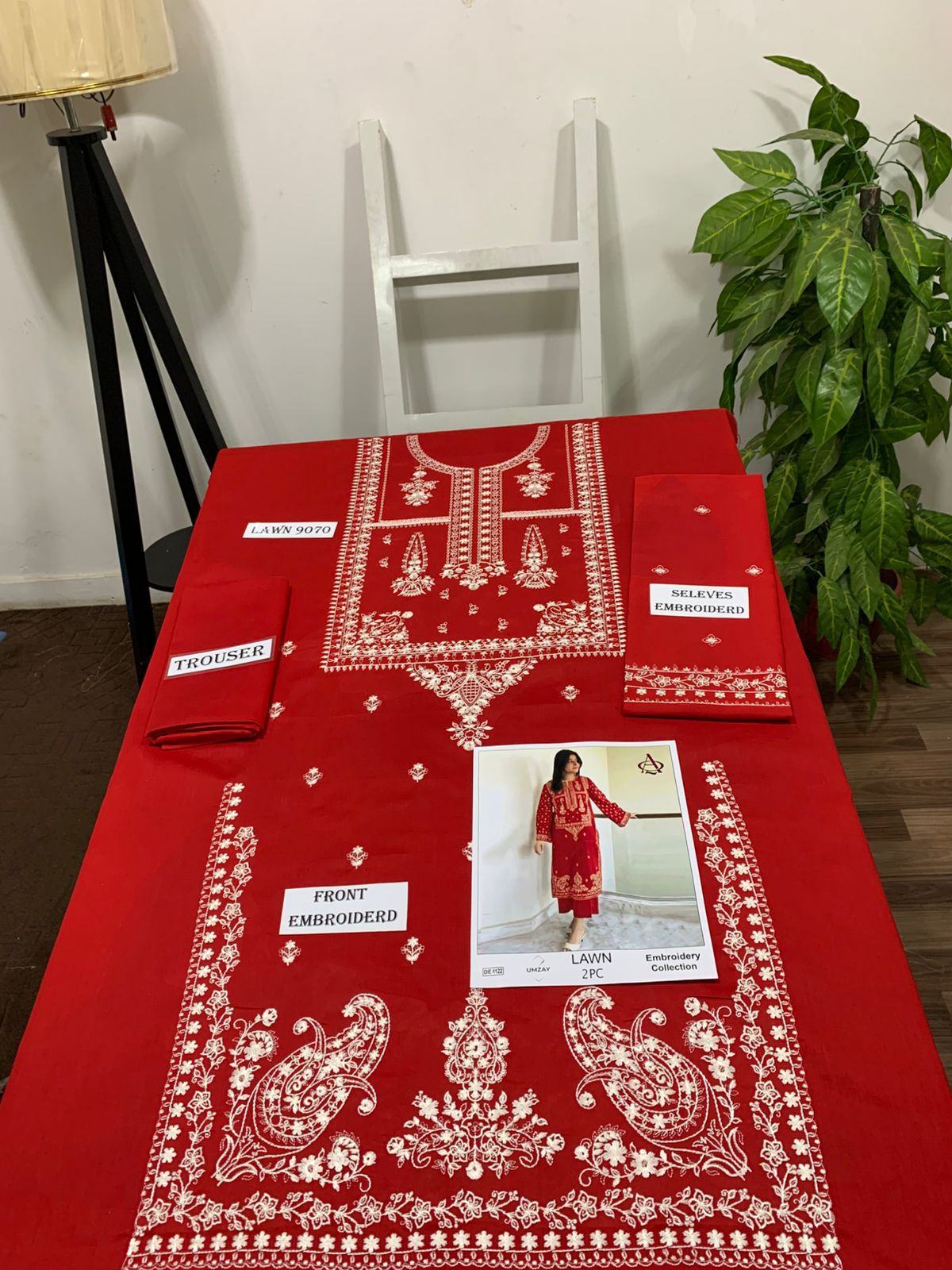 Embroidered 2Pc Lawn Unstitched Summer Dress - DE-1122RD