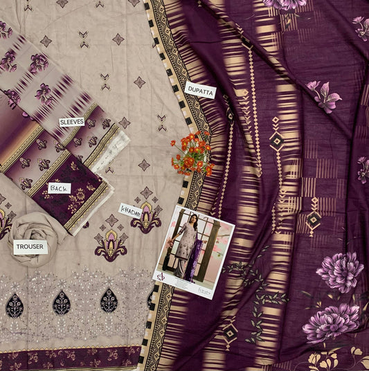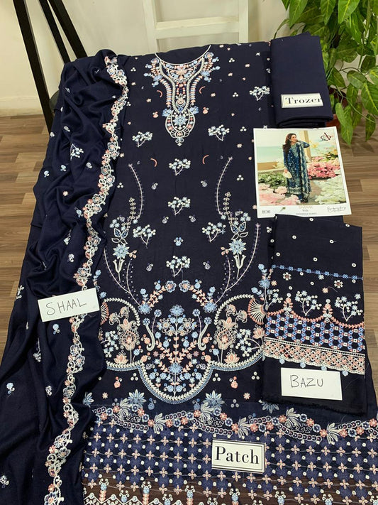Fully EMB 3PC Unstitched Winter Dress With EMB Shawl- DE-145